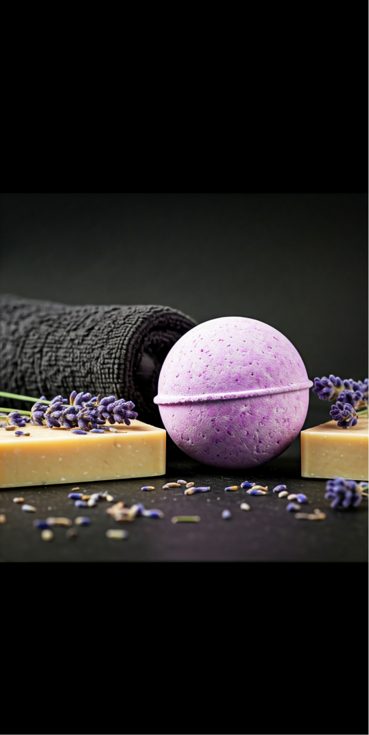 Lavender Bath Bomb: Soak your stress away with the calming scent of lavender, known for its relaxing properties. Let this bath bomb ease tension and prepare you for a peaceful night.